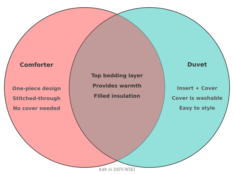 Venn diagram comparing Differences_between_Comforter and Duvet