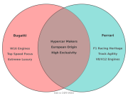| 12:26, 26 October 2025 | Venn diagram Differences between Bugatti versus Ferrari comparison.png (file) | 76 KB | Dwg | Venn diagram comparing Differences_between_Bugatti and Ferrari | |