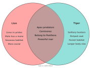 | 21:15, 28 October 2025 | Venn diagram Differences between Lion versus Tiger comparison.png (file) | 82 KB | Dwg | Venn diagram comparing Differences_between_Lion and Tiger | |